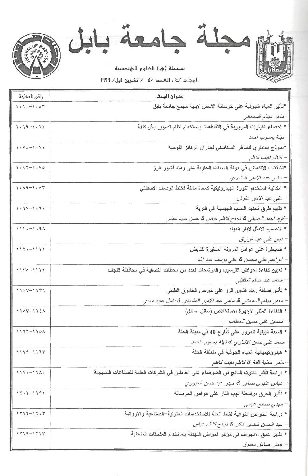 "جدول محتويات Vol. 4, No. 5, 1995", JUBES, م 4, عدد 5, 2018, تاريخ الوصول: 26 يناير، 2026. [مباشر على الإنترنت]. موجود في: https://mail.journalofbabylon.com/index.php/JUBES/article/view/1384